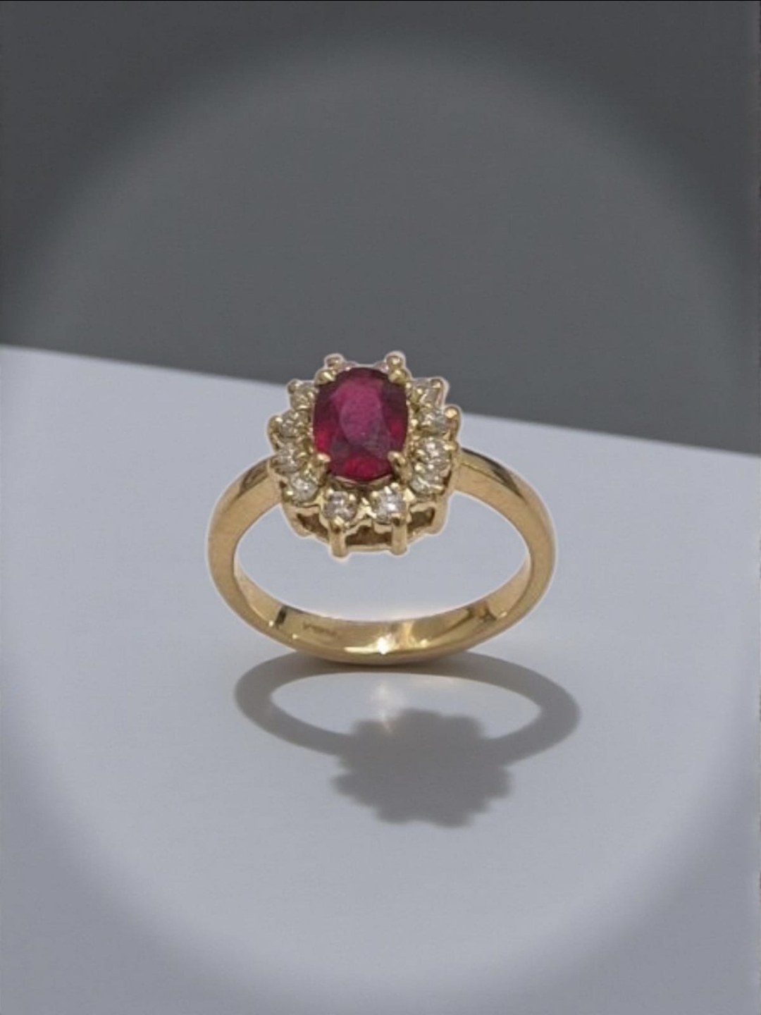 ANEL DE RUBI COM DIAMANTES NATURAIS EM OURO 18K.