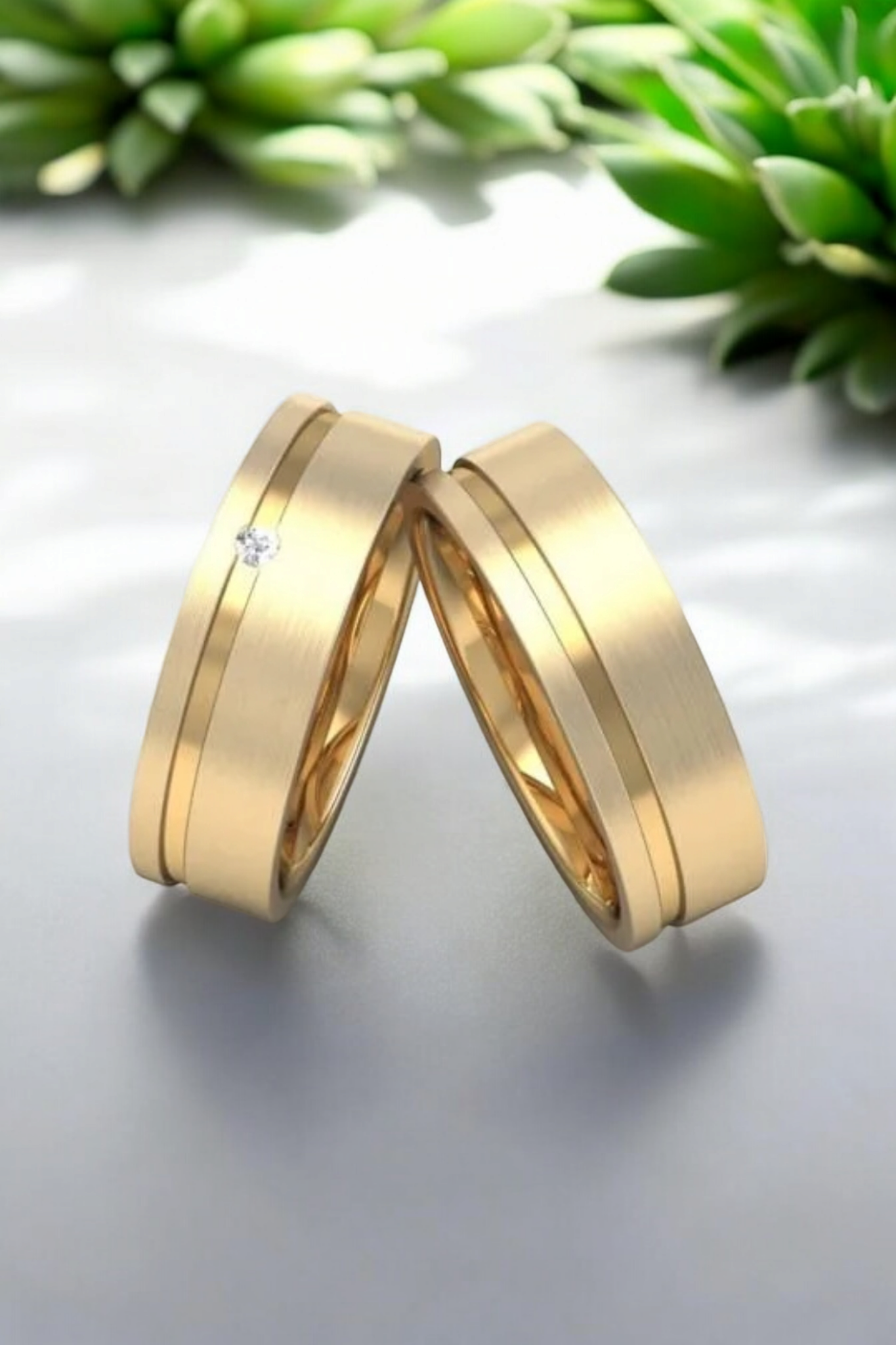 Par de Aliança com 14 gramas de Ouro Amarelo 18K com 1 diamante